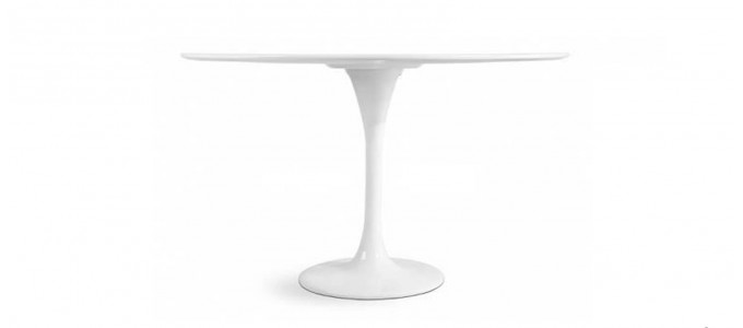 Table ronde blanche en fibre de verre 110cm Tulipe facile d'entretien et au coloris lumineux.