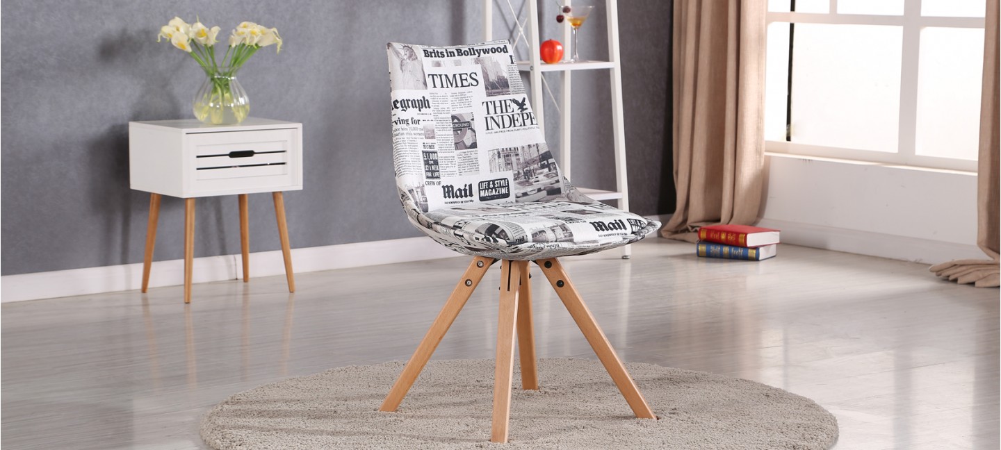 Vivre les temps forts du Times ou du Monde… Voilà ce que vous propose notre chaise scandinave en tissu effet papier journal Minsk ! Un originalité qui saura vous séduire et apporter une touche de rétro design à votre intérieur.