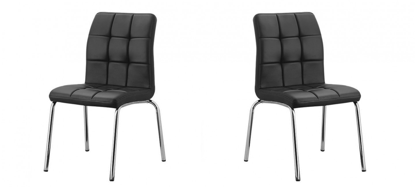 Le capitonage haut de gamme de notre chaise noire de salle à manger avec assise matelassée Nursia vous séduira par sa qualité. Allié à des pieds chromés, cette assise capitonnée noire est d'une confortabilité exceptionnelle. Profitez de nos prix fous et saisissez vite nos offres !