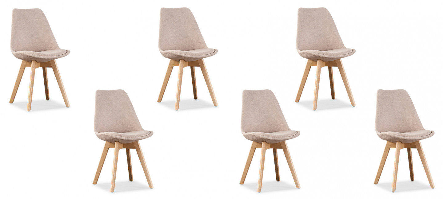 Lot de 6 chaises scandinaves tissu beige - Bjorn