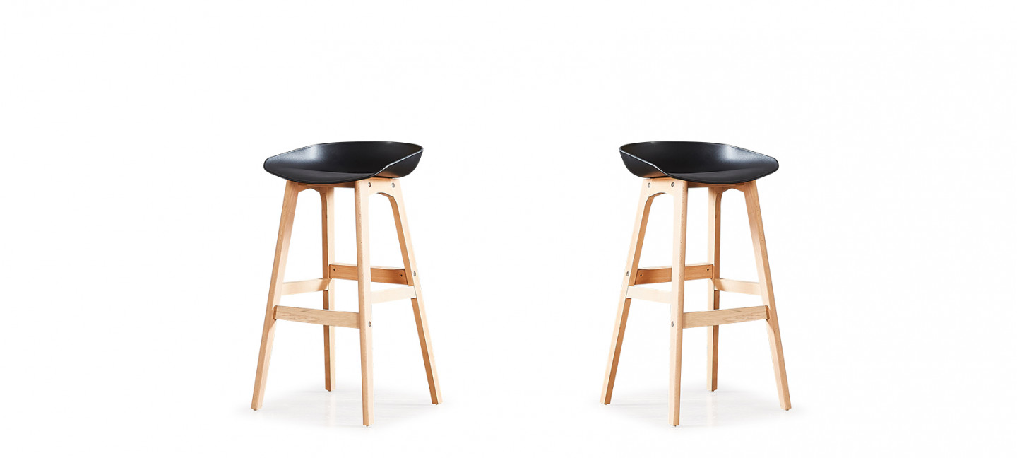 Lot de 2 tabourets de bar scandinaves noirs - Bera