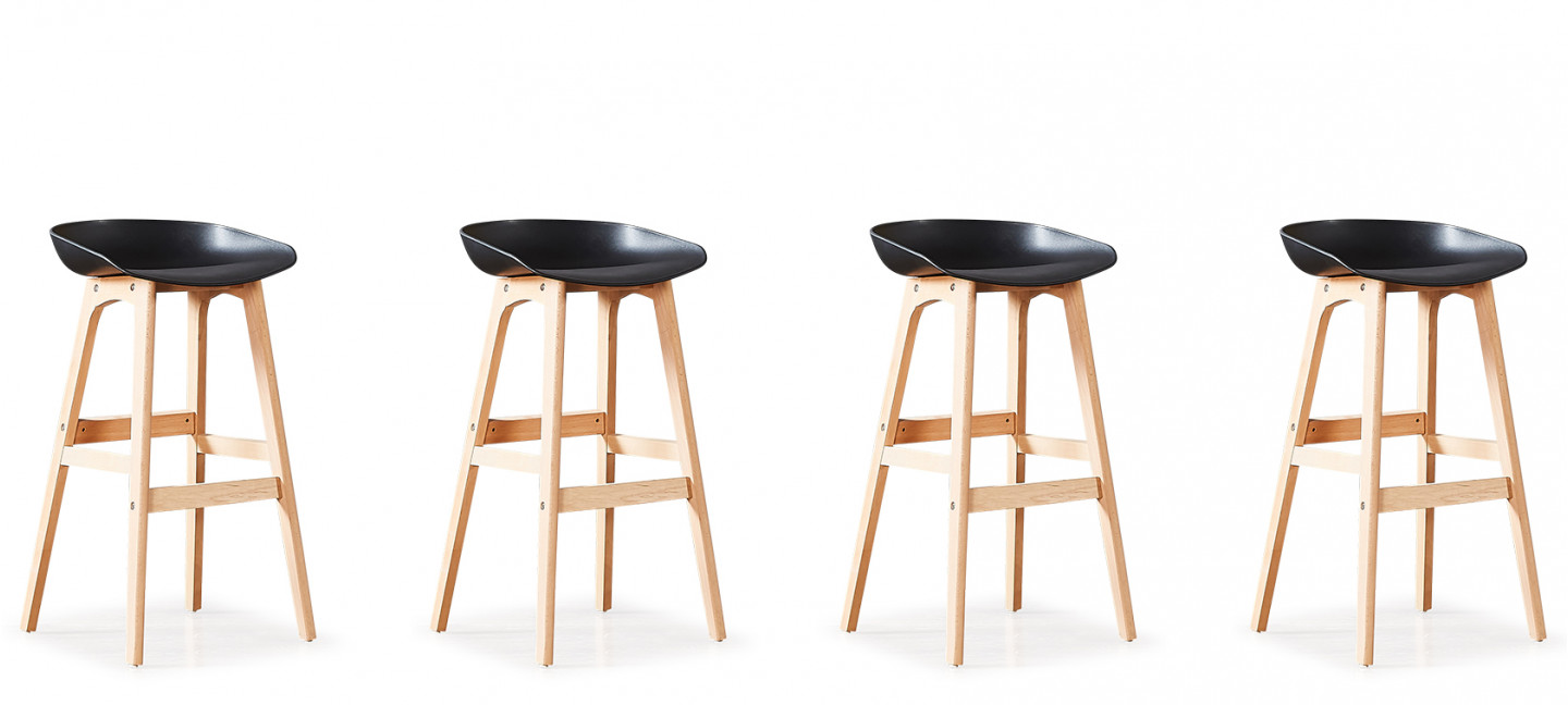 Lot de 4 tabourets de bar scandinaves noirs - Bera