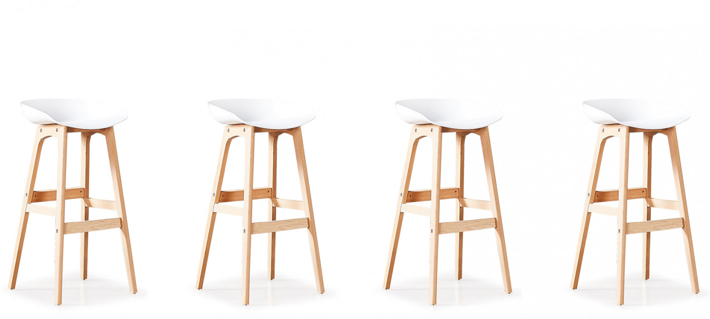 Lot de 4 tabourets de bar scandinaves blancs - Bera